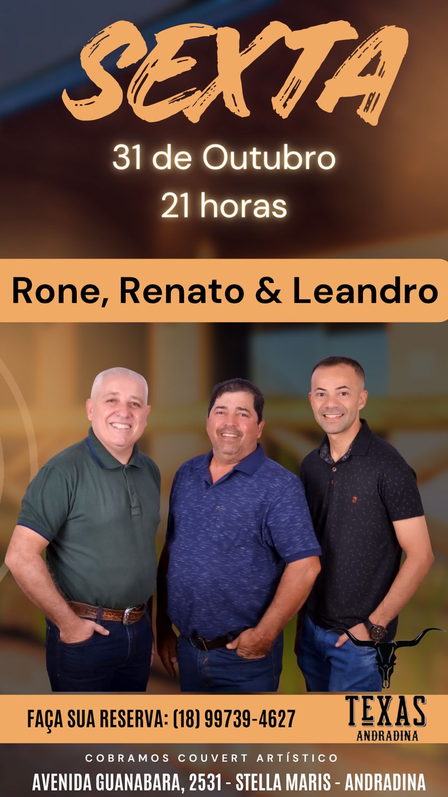 Texas Andradina: Recebe Rone, Renato & Leandro a partir das 21h.