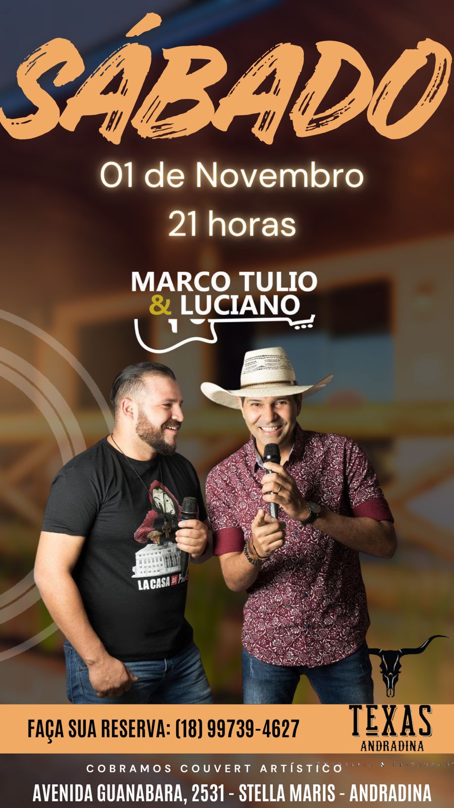 Texas Andradina (21h): Recebe o show da dupla Marco Tulio & Luciano.