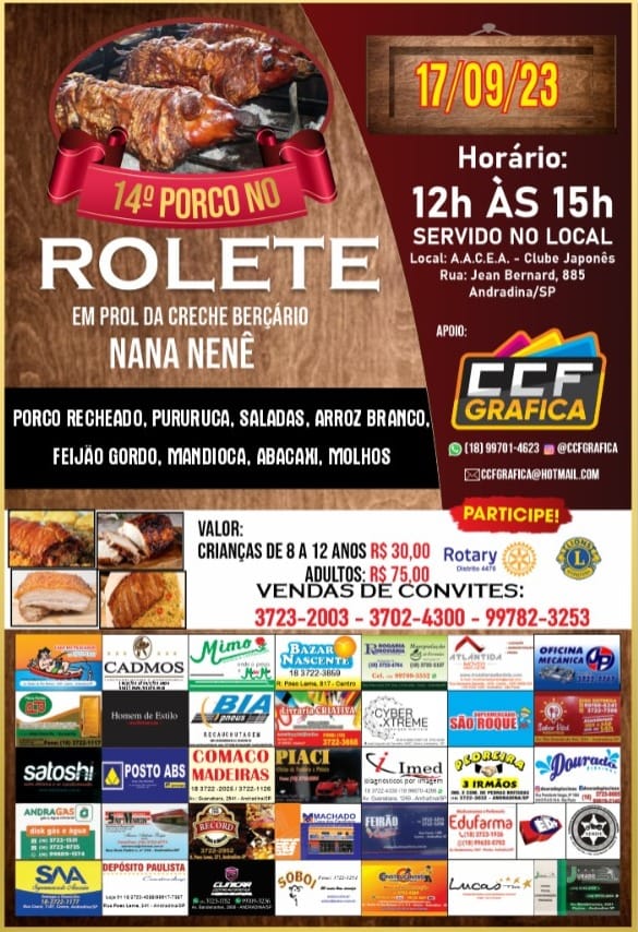 A venda dos convites está sendo feita pelos telefones (18) 3723 2003 – (18) 3702 4300 e (18) 99782 3253. Para adulto o valor é de R$ 75. Crianças de 8 a 12 anos é de 30.